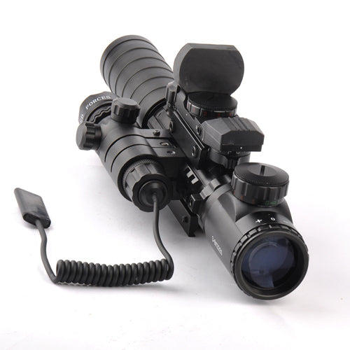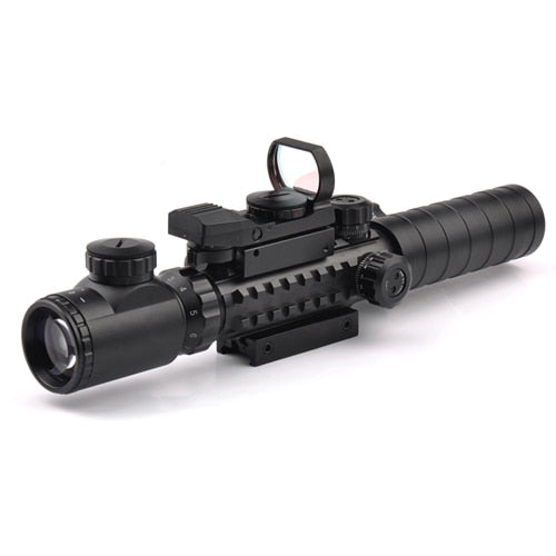 3 in 1 Combo 3-9X32EG Riflescope with Long Range Red Dot Laser and Red/Green Dot Holographic Reflex Sight fand Airsoft