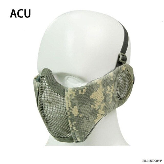 Tactical Airsoft Mask Steel Mesh Mask Ear Protection Impact Resistance 800FPS